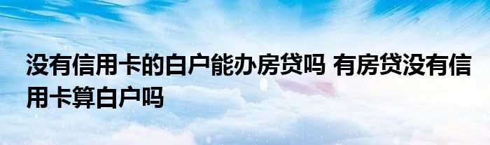 导读 大家好,小理来为大家解答以上的问题。没有信用卡的白户能办房贷吗,有房贷没有信用卡算白户吗这个很多人还不知道,现在让我们一起来看看吧!