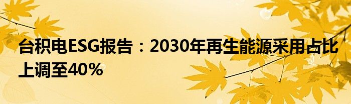 以上就是【台积电ESG报告:2030年再生能源采用占比上调至40%】相关内容。