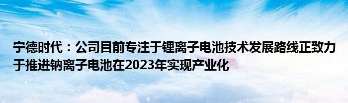 以上就是【宁德时代:公司目前专注于锂离子电池技术发展路线正致力于推进钠离子电池在2023年实现产业化】相关内容。