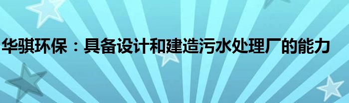 以上就是【华骐环保:具备设计和建造污水处理厂的能力】相关内容。