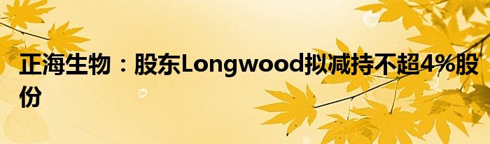 以上就是【正海生物:股东Longwood拟减持不超4%股份】相关内容。