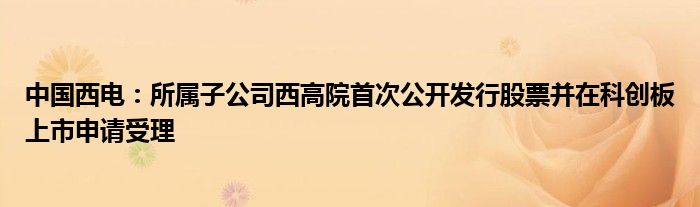 以上就是【中国西电:所属子公司西高院首次公开发行股票并在科创板上市申请受理】相关内容。