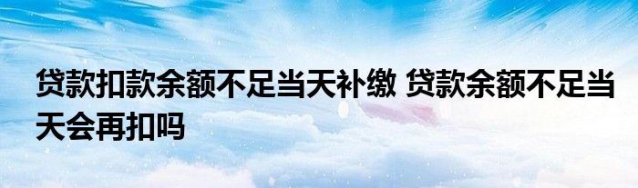 导读 大家好,小理来为大家解答以上的问题。贷款扣款余额不足当天补缴,贷款余额不足当天会再扣吗这个很多人还不知道,现在让我们一起来看看吧!