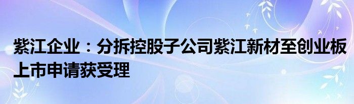 以上就是【紫江企业:分拆控股子公司紫江新材至创业板上市申请获受理】相关内容。
