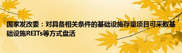 以上就是【国家发改委:对具备相关条件的基础设施存量项目可采取基础设施REITs等方式盘活】相关内容。