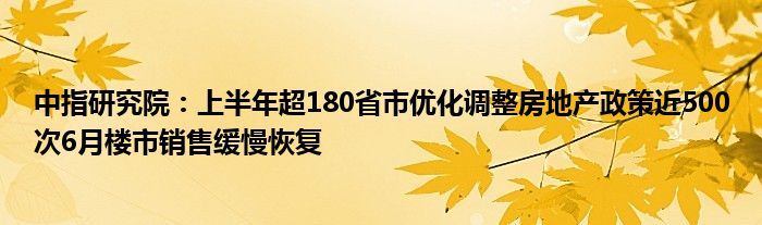以上就是【中指研究院:上半年超180省市优化调整房地产政策近500次6月楼市销售缓慢恢复】相关内容。