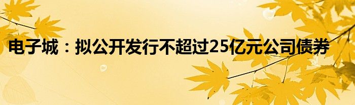 以上就是【电子城:拟公开发行不超过25亿元公司债券】相关内容。