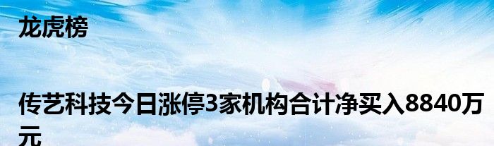 以上就是【龙虎榜|传艺科技今日涨停3家机构合计净买入8840万元】相关内容。