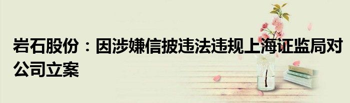 以上就是【岩石股份:因涉嫌信披违法违规上海证监局对公司立案】相关内容。