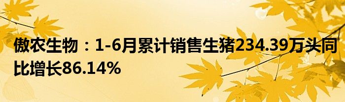 以上就是【傲农生物:1-6月累计销售生猪234.39万头同比增长86.14%】相关内容。