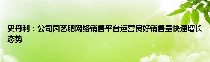 以上就是【史丹利:公司园艺肥网络销售平台运营良好销售呈快速增长态势】相关内容。