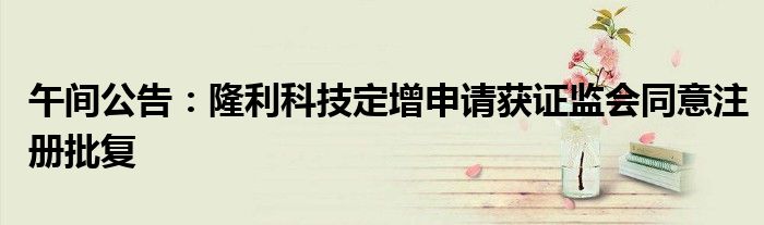 以上就是【午间公告:隆利科技定增申请获证监会同意注册批复】相关内容。