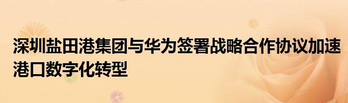 7月4日电,深圳市盐田港集团有限公司昨日与华为技术有限公司签署《战略合作协议》。根据《战略合作协议》,双方将在数字化转型、智慧港口、信息化建设、企业管理、联合创新、人才培养等领域开展战略合作,加速综合型港口数字化转型。