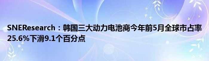 以上就是【SNEResearch:韩国三大动力电池商今年前5月全球市占率25.6%下滑9.1个百分点】相关内容。