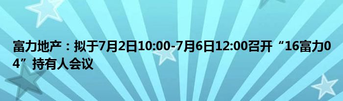 导读 7月4日电,广州富力地产股份有限公司公告,拟于2022年7月2日10:00至2022年7月6日12:00召开“16富力04”2022年第二次持有人会议,审议表决《