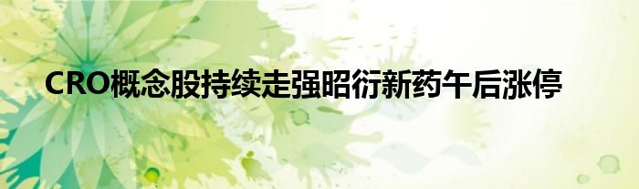 以上就是【CRO概念股持续走强昭衍新药午后涨停】相关内容。