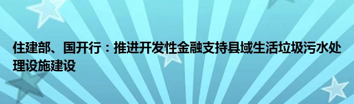 以上就是【住建部、国开行:推进开发性金融支持县域生活垃圾污水处理设施建设】相关内容。
