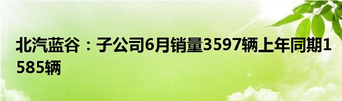 以上就是【北汽蓝谷:子公司6月销量3597辆上年同期1585辆】相关内容。