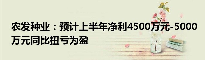 以上就是【农发种业:预计上半年净利4500万元-5000万元同比扭亏为盈】相关内容。