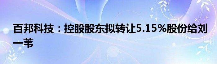 以上就是【百邦科技:控股股东拟转让5.15%股份给刘一苇】相关内容。