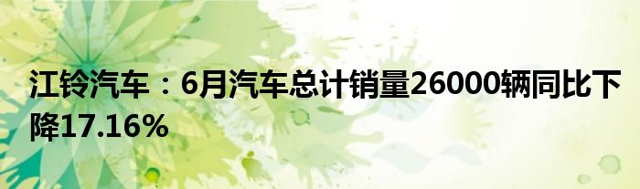 以上就是【江铃汽车:6月汽车总计销量26000辆同比下降17.16%】相关内容。