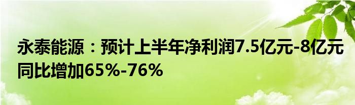 以上就是【永泰能源:预计上半年净利润7.5亿元-8亿元同比增加65%-76%】相关内容。