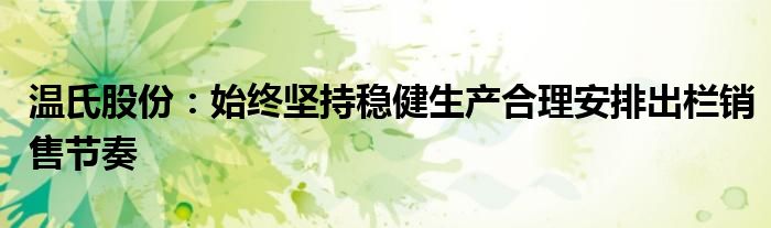 以上就是【温氏股份:始终坚持稳健生产合理安排出栏销售节奏】相关内容。