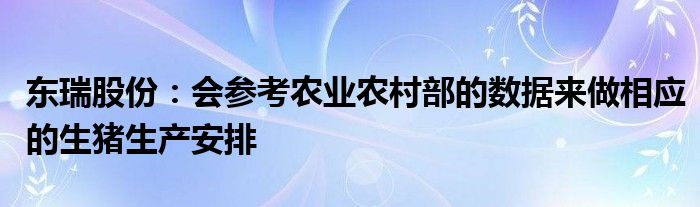 以上就是【东瑞股份:会参考农业农村部的数据来做相应的生猪生产安排】相关内容。