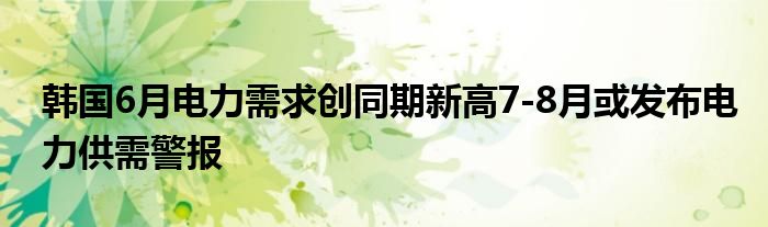 以上就是【韩国6月电力需求创同期新高7-8月或发布电力供需警报】相关内容。