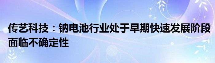 以上就是【传艺科技:钠电池行业处于早期快速发展阶段面临不确定性】相关内容。