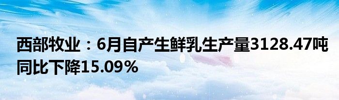 7月4日电,西部牧业公告,6月自产生鲜乳生产量3128.47吨,同比下降15.09%,环比下降0.64%。