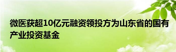 以上就是【微医获超10亿元融资领投方为山东省的国有产业投资基金】相关内容。