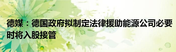 以上就是【德媒:德国政府拟制定法律援助能源公司必要时将入股接管】相关内容。