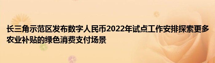 以上就是【长三角示范区发布数字人民币2022年试点工作安排探索更多农业补贴的绿色消费支付场景】相关内容。