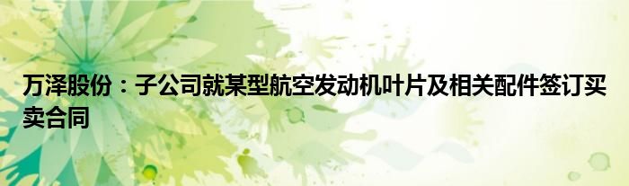 以上就是【万泽股份:子公司就某型航空发动机叶片及相关配件签订买卖合同】相关内容。