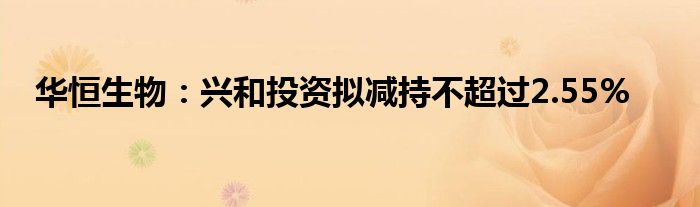以上就是【华恒生物:兴和投资拟减持不超过2 55%】相关内容。
