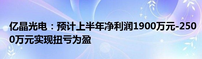 以上就是【亿晶光电:预计上半年净利润1900万元-2500万元实现扭亏为盈】相关内容。