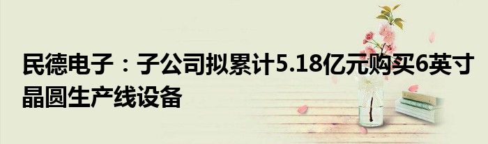 以上就是【民德电子:子公司拟累计5.18亿元购买6英寸晶圆生产线设备】相关内容。