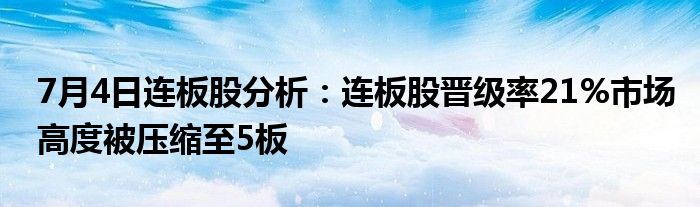 以上就是【7月4日连板股分析:连板股晋级率21%市场高度被压缩至5板】相关内容。