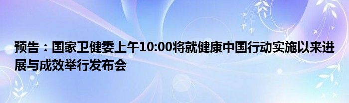 以上就是【预告:国家卫健委上午10:00将就健康中国行动实施以来进展与成效举行发布会】相关内容。