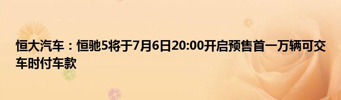 以上就是【恒大汽车:恒驰5将于7月6日20:00开启预售首一万辆可交车时付车款】相关内容。