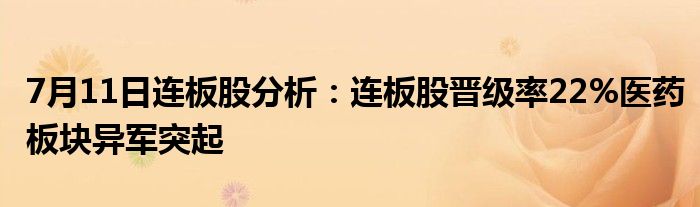 以上就是【7月11日连板股分析:连板股晋级率22%医药板块异军突起】相关内容。