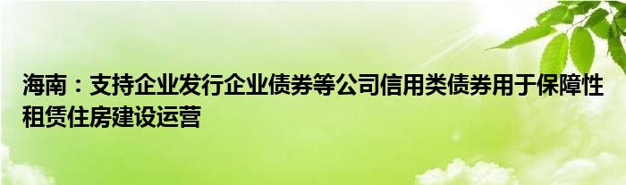 以上就是【海南:支持企业发行企业债券等公司信用类债券用于保障性租赁住房建设运营】相关内容。