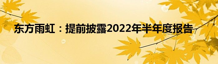 以上就是【东方雨虹:提前披露2022年半年度报告】相关内容。