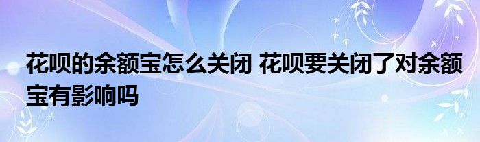 导读 大家好,小理来为大家解答以上的问题。花呗的余额宝怎么关闭,花呗要关闭了对余额宝有影响吗这个很多人还不知道,现在让我们一起来看看吧!